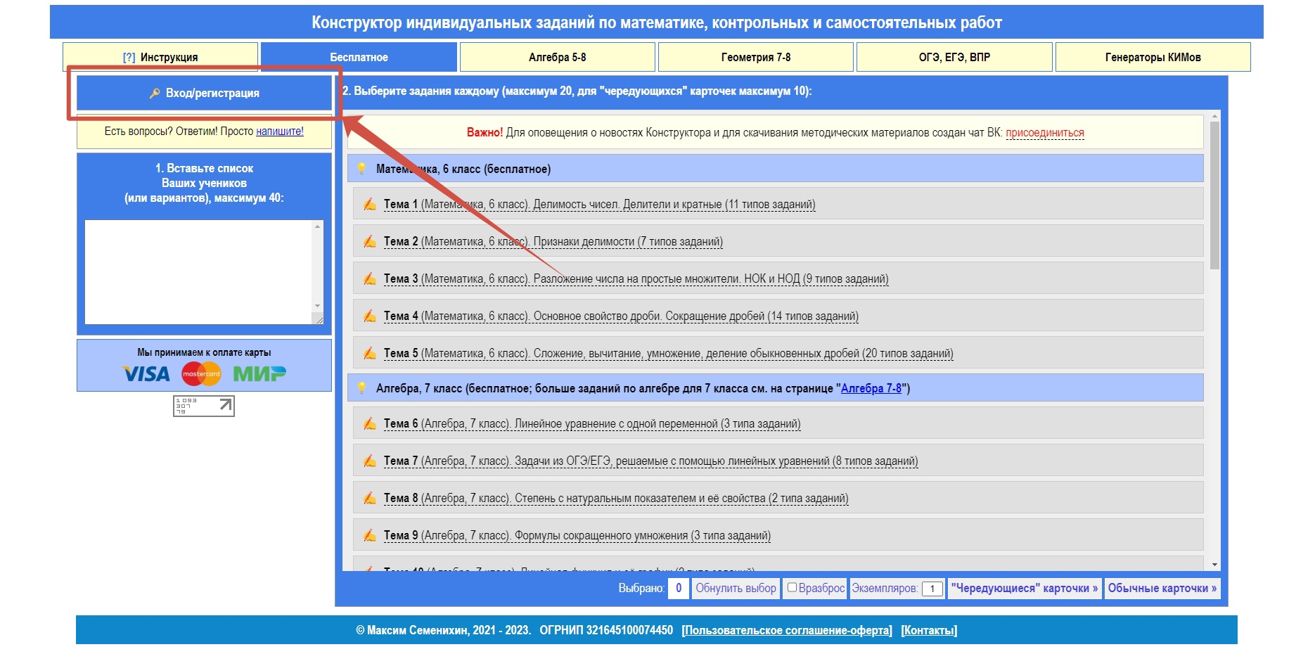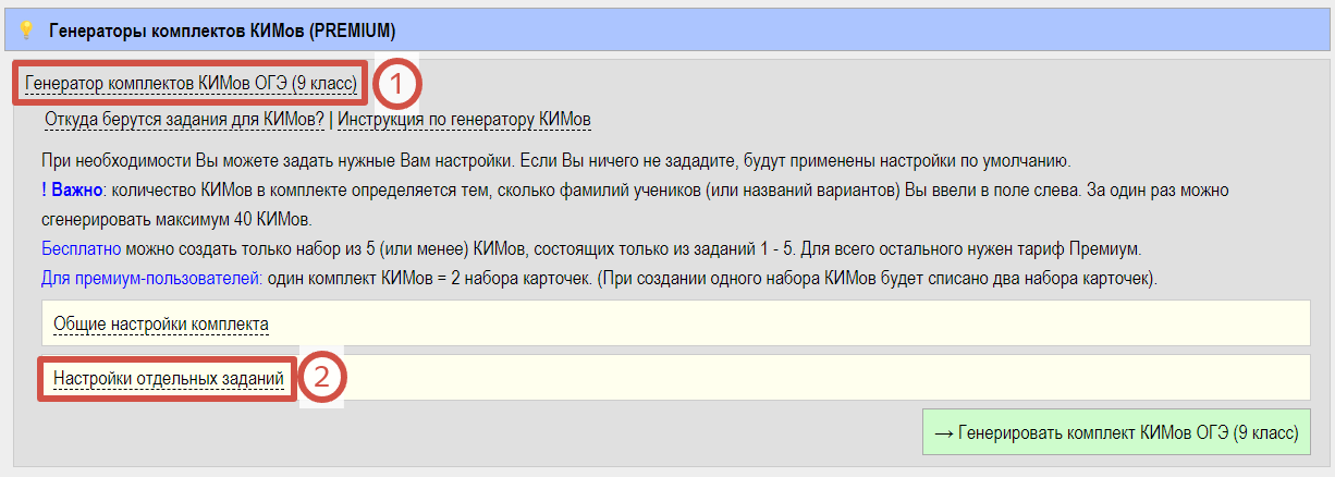 Это инструкция по платной версии генератора комплектов КИМов (для пользователей с тарифом Премиум).
