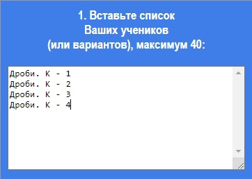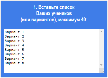 3) Заполнить список учеников/названий вариантов. Строки в этом списке - названия КИМов. Соответственно, количество строк равно количеству КИМов.