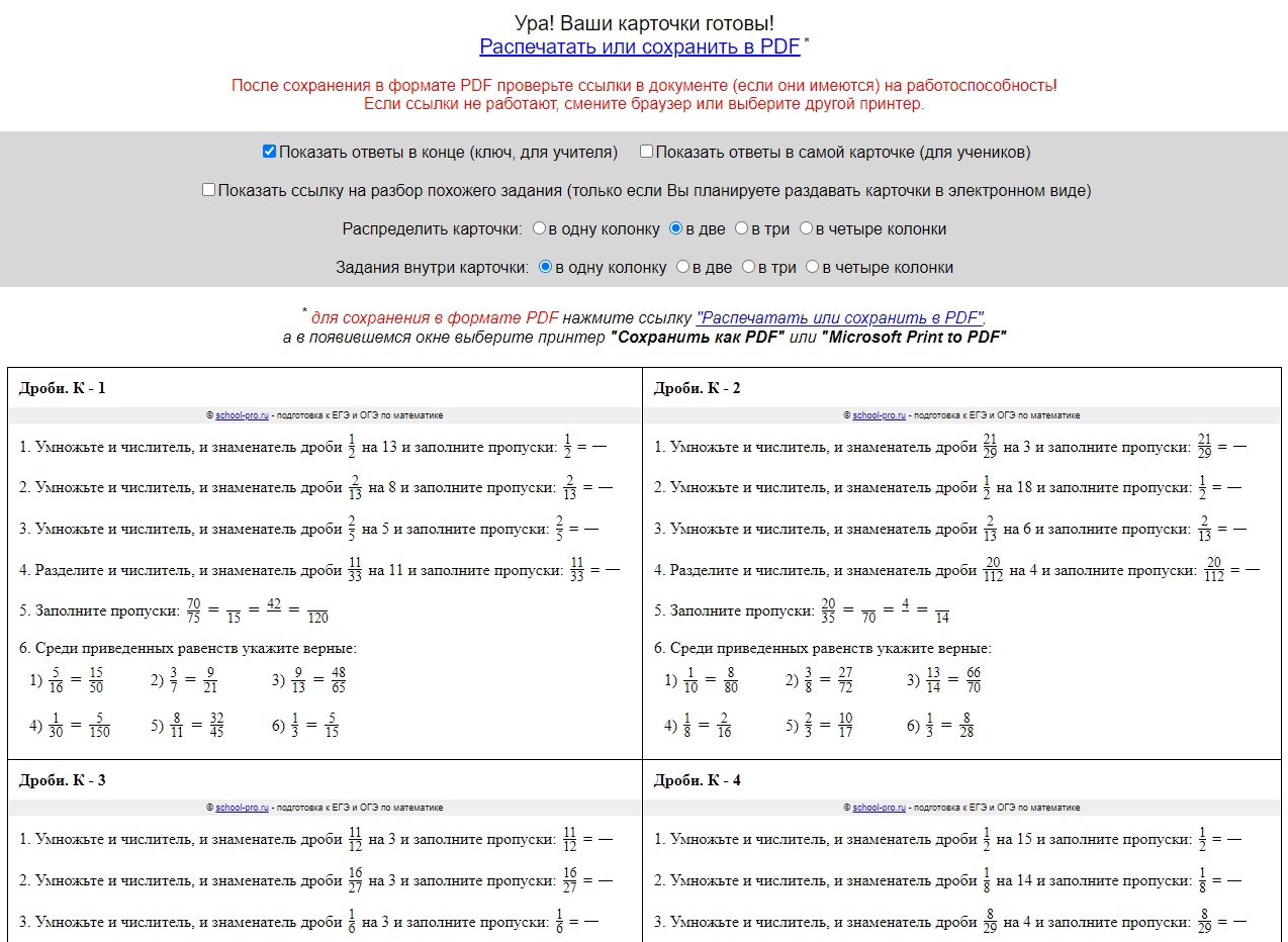 если Вы хотите сохранить комплект КИМов в PDF-файл.